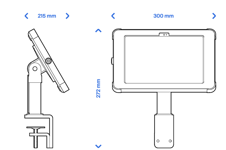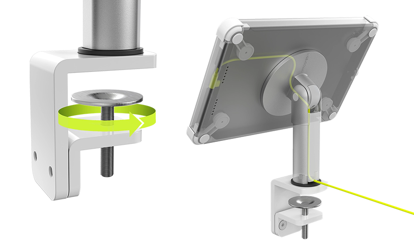 Our clamp tablet mount is perfect for tables and counters with an available edge, providing a secure yet flexible solution. Easily reposition your tablet stand to adapt to changing needs without the hassle of drilling.