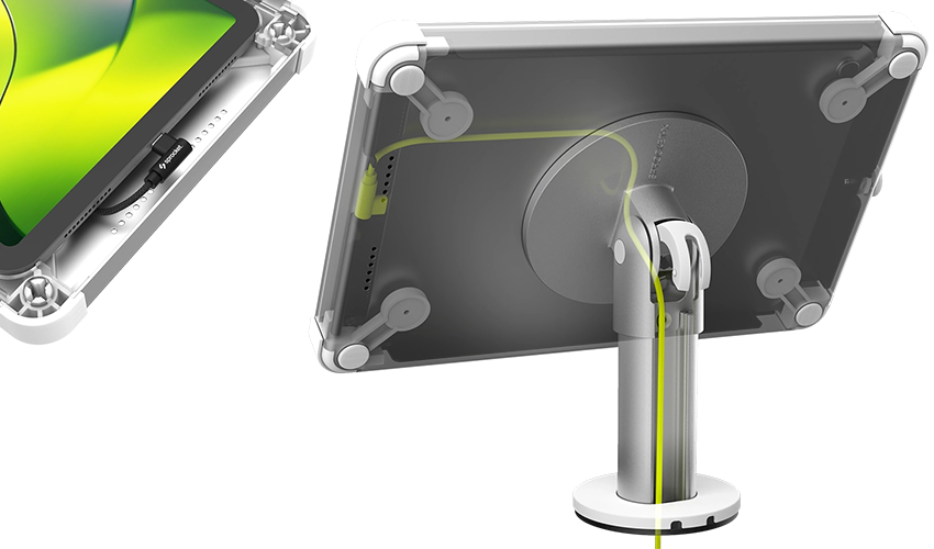 Our screw fixed tablet stand provides a secure and permanent solution for interactive tablet installations, ensuring stability in high use applications. With concealed power cables, your setup remains sleek and professional, perfect for retail environments.