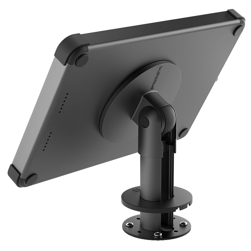 Absolutely. Most of our tablet holders for desks feature a tilt mechanism that allows the screen viewing angle to be adjusted so users can interact comfortably and clearly from different positions. This flexibility allows for optimal viewing and interaction with the tablet. Some of our models also feature adjustability in the horizontal plane or use temporary mount methods that allow the entire stand to be repositioned as required. Check the specifications for each model to confirm adjustability options.